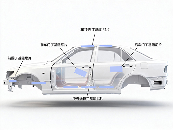 KJ-722M环保阻尼板由合成橡胶和树脂混合制成,具备高阻尼低密度,高粘接性能,低VOC,低气味,铺贴便捷,可重复调整定位,比丁基阻尼板更方便,兼具一定补强效果,满足GB/T 27630要求,尤其适用于替代沥青阻尼片,符合环保减重趋势。